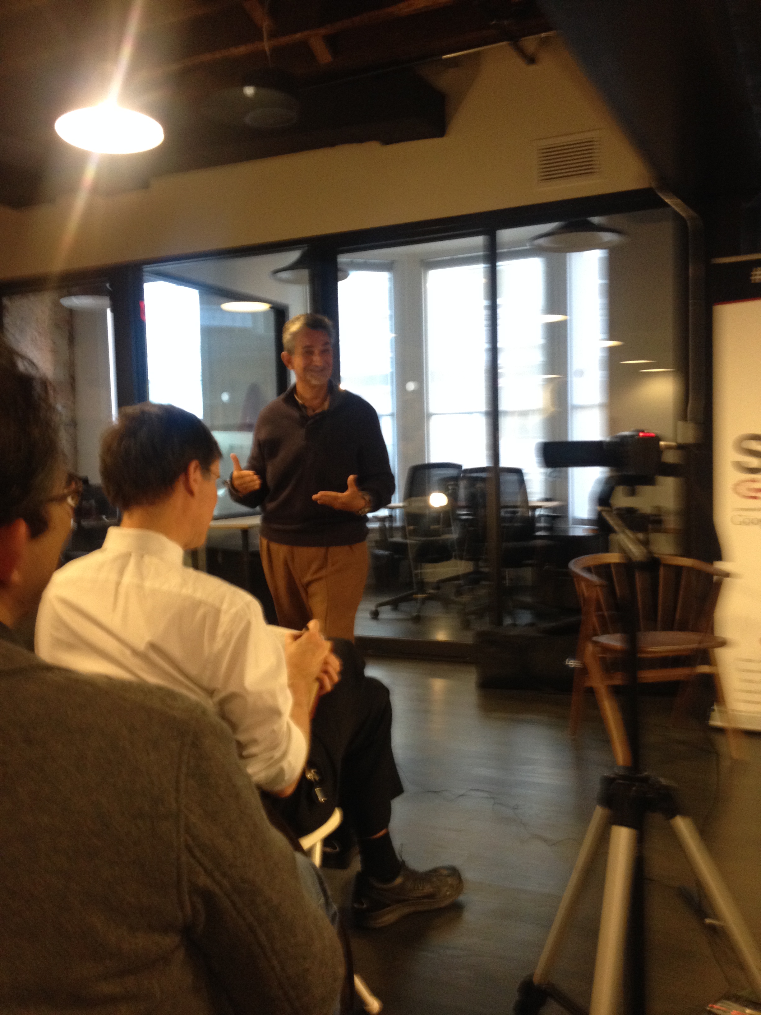 FiscalNote’s founding team Jonathan Chen, CTO, (center); Tim Hwang, CEO, (near right); Gerald Yao, CFO, (far right) joined by Michael Weaver, VP of Business Development (back right) at. And, on the left special guests…the Greenbergs, parents of In the Capital Senior Staff Writer, Molly Greenberg. Hilarious! That’s me squinting at the camera.
