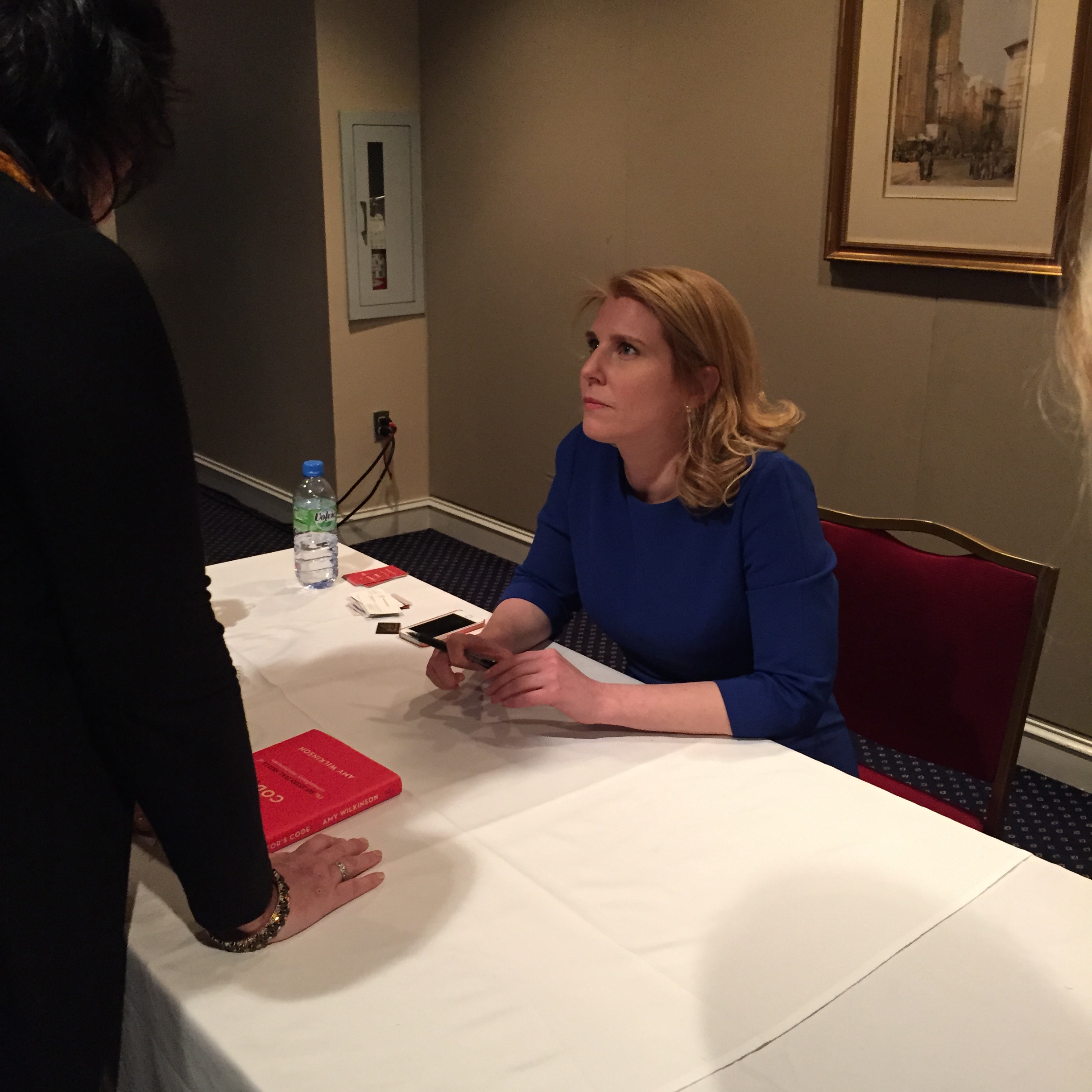 Amy Wilkinson, author of the Creator’s Code, listens carefully to people as they stop by to get their books autographed.